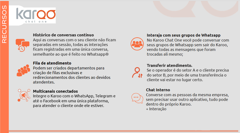 Possibilita a comunicação entre membros da equipe dentro do próprio Karoo, sem apps externos. |