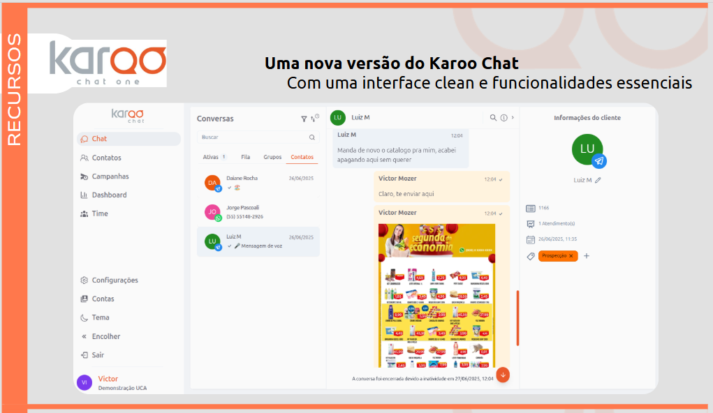 Interface clean, funcional e intuitiva (semelhante ao WhatsApp). |